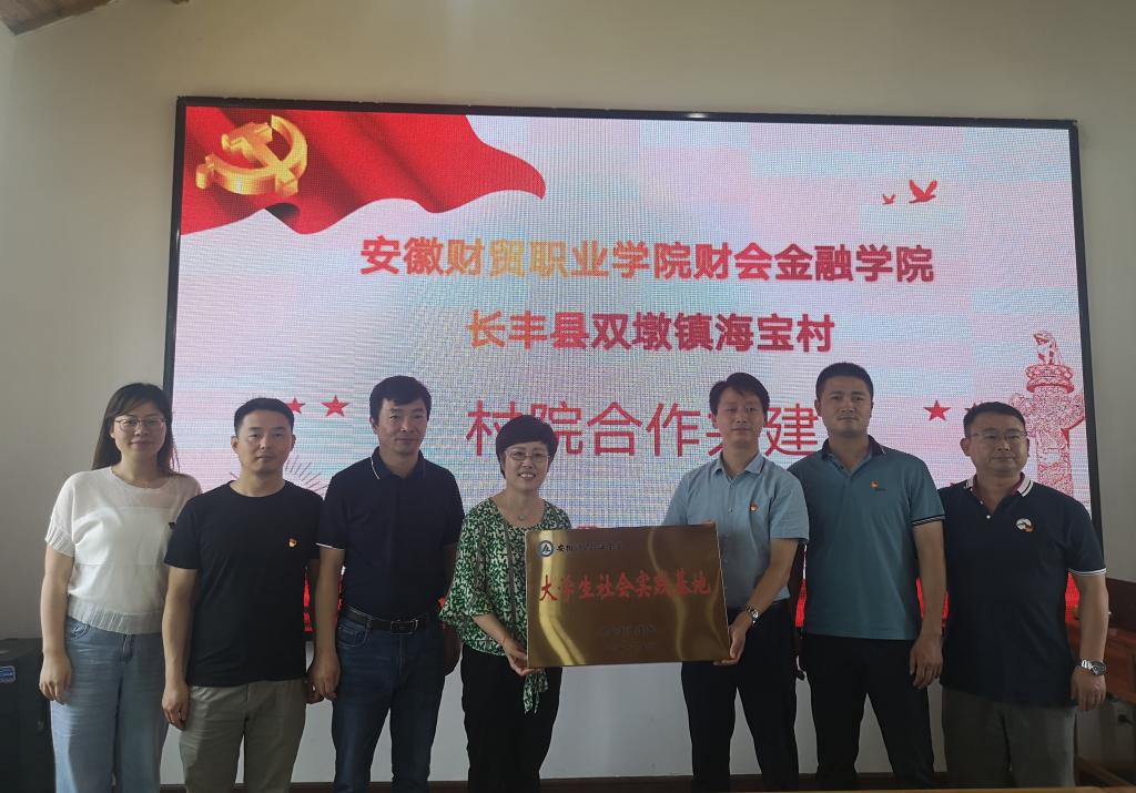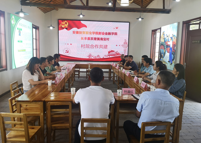 6月4日上午,财会金融学院党总支书记胡宏萱、副院长方春龙、党总支副书记李健、教师第二党支部书记查静、团总支书记沈丽萍一同来到长丰县双墩镇海宝村就“村院合作共建”进行洽谈。长丰县双墩镇政法委书记赵明、海宝村驻村第一书记王世龙、村党支部书记叶道红等出席座谈。