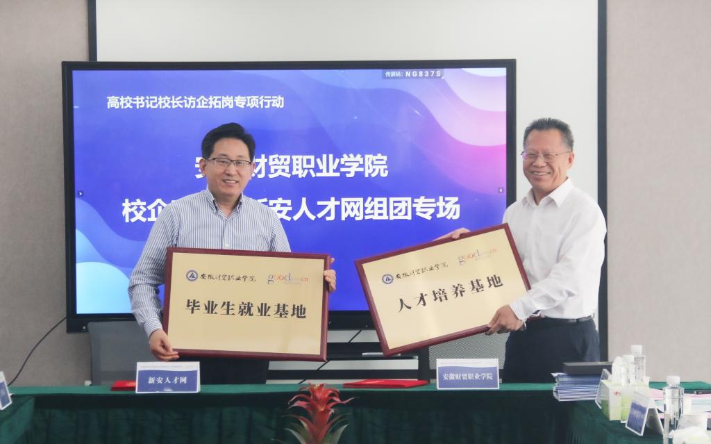 座谈会后,学校与新安人才网签署了校企合作协议,并互授“毕业生就业基地”和“人才培养基地”牌匾。