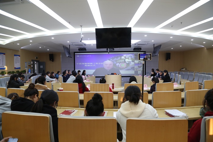 仪式上,张志祥、刘银国、吴胜兵、余雪共同为“智能财税工程学院”揭牌。中联集团教育科技有限公司专家李昕针对工程学院协同育人机制及社会化服务开展做了一场精彩的讲座。