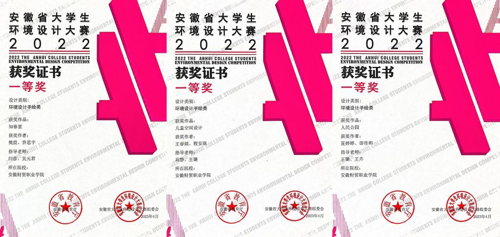大赛充分锻炼了学生设计实践能力及创新能力,以建筑空间环境设计为核心,解决环境设计创新思维、技术与方法;以建筑环境和景观设计为辅助,拓展设计思维、延伸专业触觉、开阔设计视野。经过激烈的角逐,最终环艺2001班夏婷婷、邵佳和作品《人民公园》、环艺2101 班王睿婧、程安琪作品《儿童空间设计》、环艺2001樊晨、乔思宇作品《知春里》荣获一等奖。高静、王卉、王璐、闫彦、吴元君均获大赛组委会授予“优秀指导教师”称号。