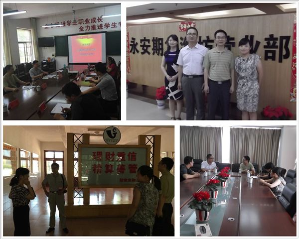 6月12至13日,科研处副处长席清才、财税金融系副主任方晓雄、金融专业教师周阳、刘岚一行四人前往山东经贸职业学院,考察该院金融类专业建设情况并洽谈教育部建设项目的深入合作事宜。 山东经贸职业学院为山东省最早开设金融专业的职业院校,该院的金融管理与实务专业为山东省省级特色专业,具有丰富的专业建设经验。该院科研处处长李顺燕、财政金融系主任宋立温、副主任于磊、张清亮等分别介绍了金融类专业人才培养模式、实践教学、科研成果及校企合作等情况;两校还就农村金融专业企业生产实际教学案例库共建共享深入交流并达成共识;考察组还参观了该校的“金融综合实训中心”。