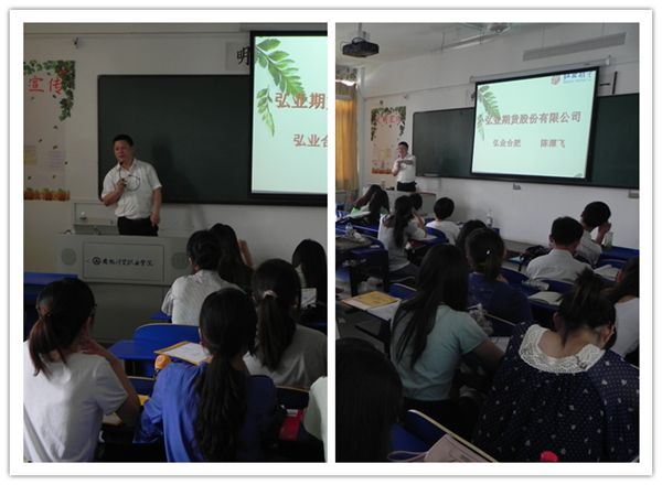 6月6日下午,江苏弘业期货股份有限公司合肥营业部陈潭飞经理走进2012级证券与期货专业《期货投资实务》课堂,他从一年来国内期货界十件大事入手,讲述了我国期货业的现状和未来发展前景,并就期货公司业务流程、待遇以及从业人员资格考证等问题回答了同学们的提问。
