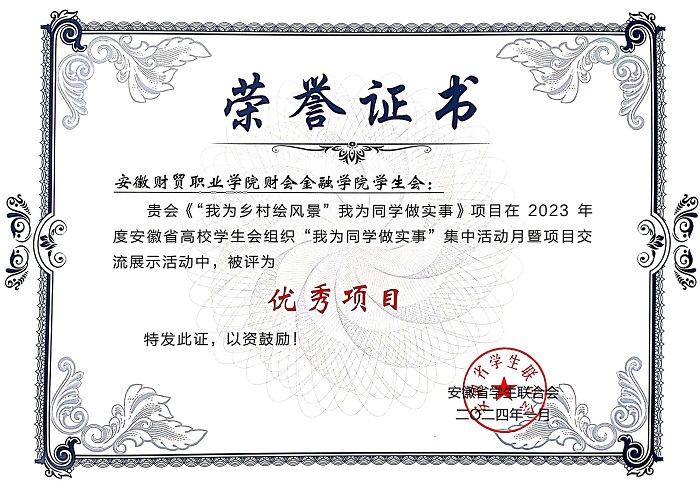 我院学生会荣获2023年度安徽省高校学生会组织“我为同学做实事”优秀项目