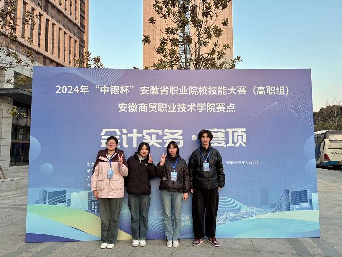 1月16日,2024年“中银杯”安徽省职业院校技能大赛(高职组)会计实务赛项在安徽商贸职业技术学院举行。由李晶、丁文宁老师指导的夏崇轩、张歆、郑婷婷、潘琴团队荣获团体第四名,由卫欣怡、翁樱溪老师指导的张梦晗、丁浩然、邓雯、范可欣团队荣获团体第七名,由贺之梦、汤志飞老师指导的胡越、张珂珂、胡福远、王志杰团队荣获团队第八名。
