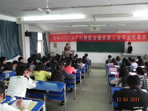 4月13日,财税金融系第二次学生代表大会在5101教室隆重召开,院团委副书记朱玫林、系主任邓庆安、系党总支副书记李秀珍出席大会。