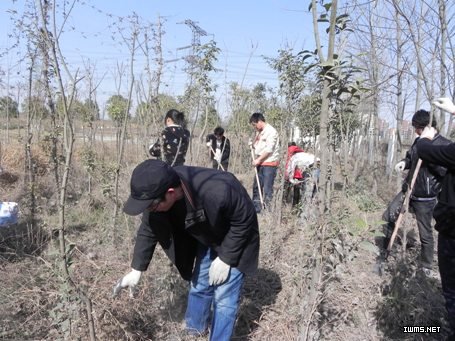 3月16日下午,财税金融系党总支副书记李秀珍带领支部全体党员及09级党员发展对象对系支部林进行了集中的除草护绿。