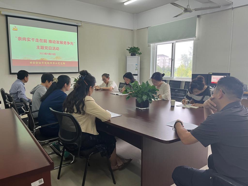 9月20日下午,财会金融学院教师第二党支部在综合楼312室召开了“崇尚实干走在前 推动发展勇争先”主题党日活动,活动由党支部书记查静主持。