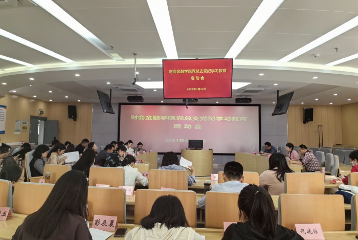4月24日下午,财会金融学院党总支在A502实训室召开党纪学习教育工作启动会,部署开展党纪学习教育工作。党总支书记胡宏萱主持会议,全体党员参加会议。