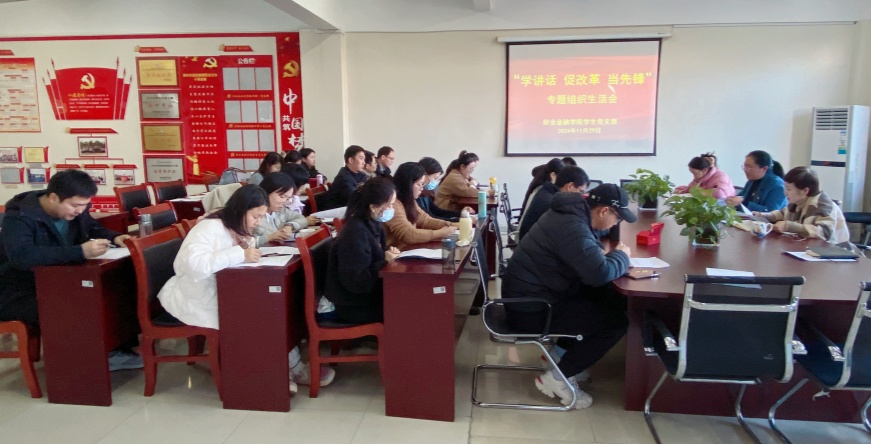 11月29日,财会金融学院学生党支部召开“学讲话 促改革 当先锋”专题组织生活会。会议由支部书记左艳琼主持,支部全体党员参会。
