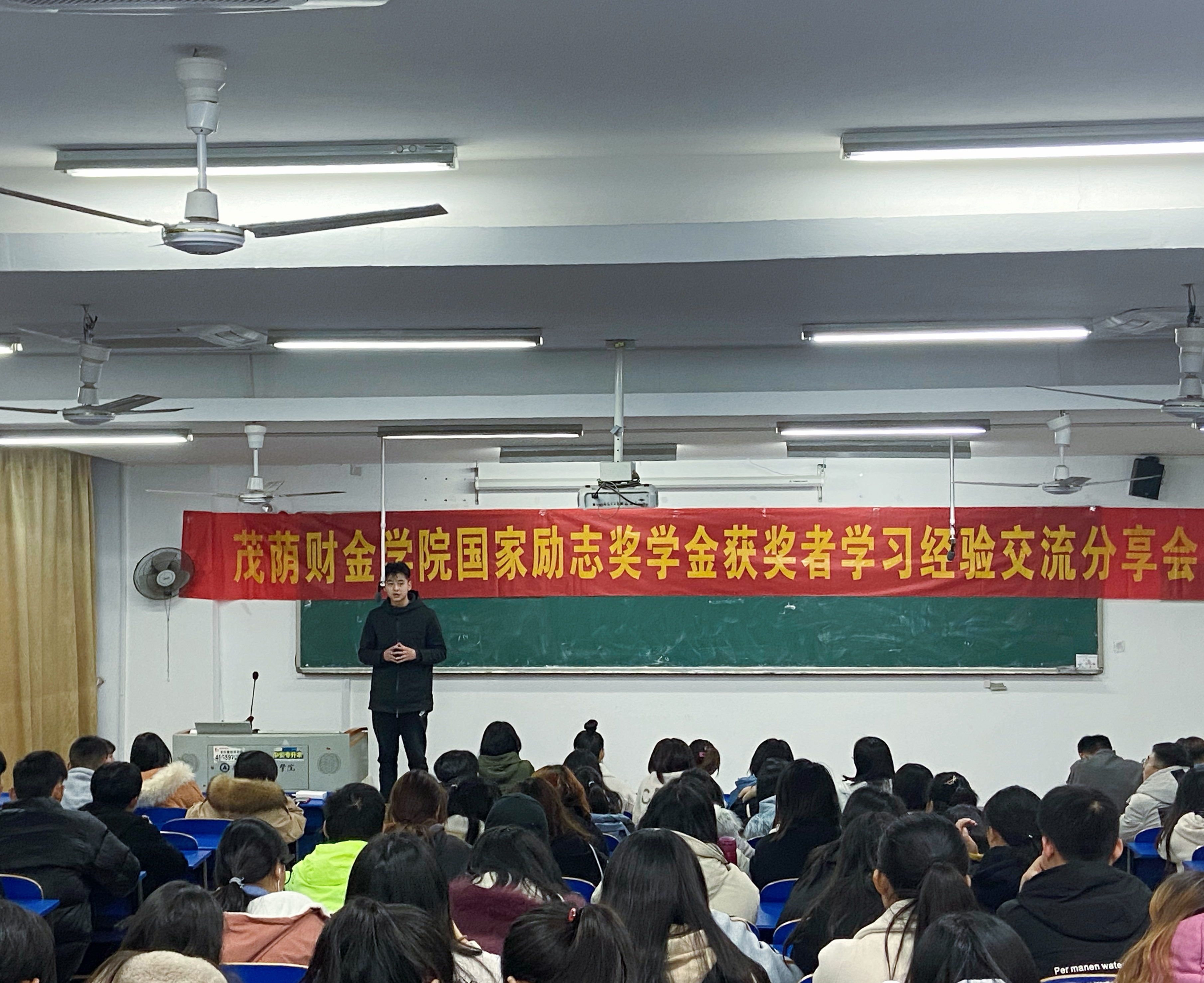 为了充分发挥优秀学生的示范和引领作用,更好地引导青年大学生成长成才,12月11日晚6:00,茂荫财金学院在6201教室召开国家励志奖学金获得者学习经验交流分享会,11位荣获2018-2019年度国家励志奖学金的同学在会上发言交流,结合自己的成长经历、学习经验、未来规划,讲述自身勤奋求学的故事,分享遇到困难绝不放弃的心路历程。学生秘书李彧佳主持分享会。