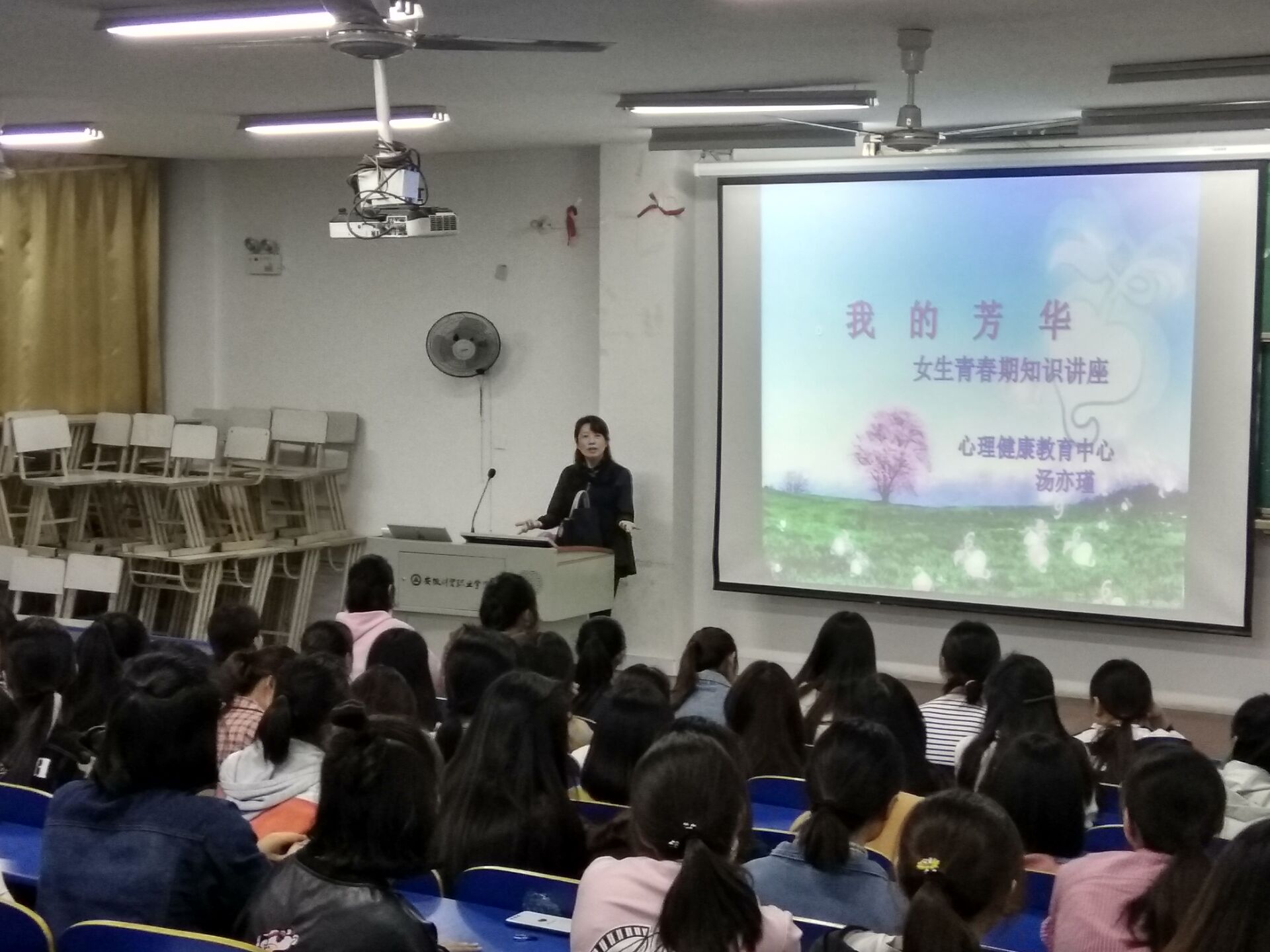 为进一步普及心理健康知识,引导女大学生关爱、了解自己,关注心理健康和心灵成长,提高心理素质,促进全面发展。4月12日晚,茂荫财金学院在6103教室举办《我的芳华》女生心理健康专题讲座,学生处心理健康教育中心主任汤亦瑾老师担任主讲,茂荫财金学院2017级近300名女生聆听讲座。