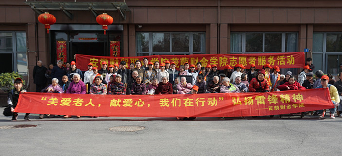 阳春三月,春光明媚,为践行雷锋精神,弘扬尊老、爱老、敬老、助老的中华民族传统美德。3月24日上午,茂荫财金学院中特会和青年志愿者们,在专职辅导员童杰老师的带领下,走进合肥市明珠晚晴敬老院,开展“关爱老人,献爱心,我们在行动”志愿服务活动。