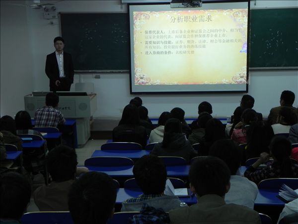 投资0702班丁宁同学2010年通过专升本考上铜陵学院,向同学们分享了自己的在校情况、专升本经历。他重点介绍了自己专升本后就把获得注册会计师资格证书作为下一个阶段性目标,并在毕业前如愿以偿获得CPA的经验。今年,他又报考了律师从业资格证,刚刚从一家会计师事务所离职的他,下一个目的地是北京、上海。 “不要在应该奋斗的时间选择了安逸……”是他送给学弟学妹们的宝贵箴言。