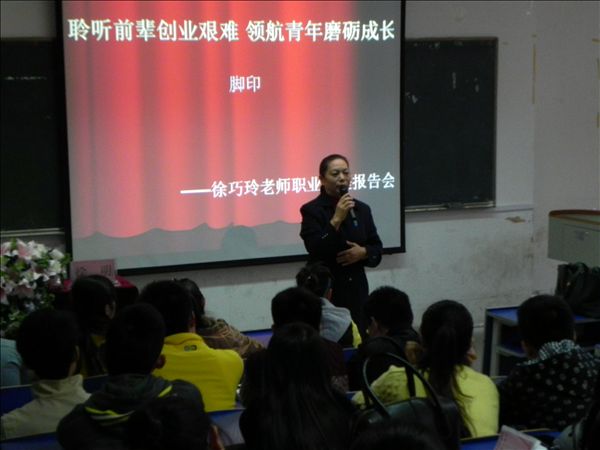 秋叶渐黄,骊歌唱响。转眼2015届毕业生即将离校顶岗实习。毕业前,同学们还需做哪些进入职场的心理和思想准备?今后的职业人生应该树立怎样的奋斗目标?10月29日下午,财税金融系邀请学院关工委委员徐巧玲在5101教室的一场题为《脚印》的职业生涯引领报告会,主讲人以一名长者的身份和过来人的经历叮嘱即将离校的毕业生脚踏实地,做有理想、有目标的职场精英。该系党总支副书记徐明主持报告会。