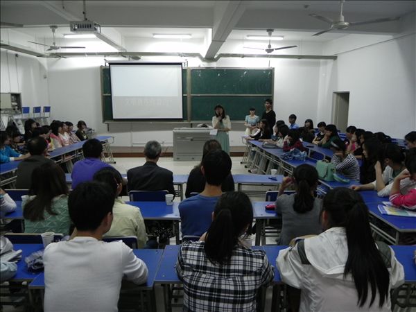 班会上,同学们将拍摄的校园内文明现象和不文明现象通过幻灯片演示进行了对比讨论,总结了大学生形象的出发点和落脚点在于身边的文明,将形象教育的主题具体化、细节化。此外,小品、朗诵等艺术形式生动地诠释了作为当代大学生应该具备的形象和素质。 该系主任邓庆安,2012级辅导员班主任及各班班长、团支书到场全程观摩了班会。
