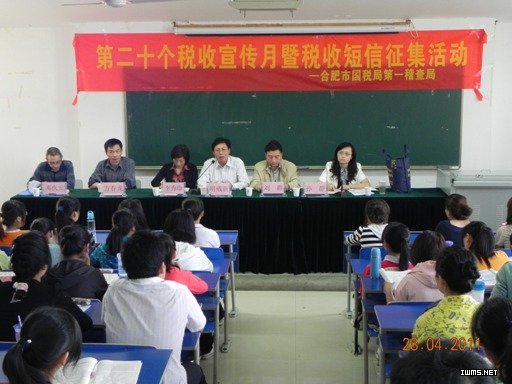 4月份是全国第二十个税收宣传月,28日上午,“第二十个税收宣传月暨短信征集活动”启动仪式在我院举行。副院长胡戴新、合肥市国税局第一稽查局局长刘群出席,财税金融系主任邓庆安主持启动仪式。