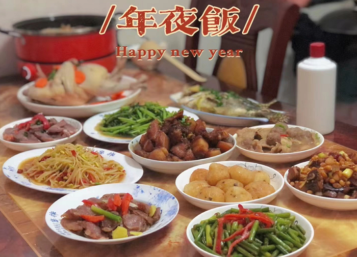 如果说家书是对家乡的视觉记忆,那年夜饭一定是藏在每个人心中最独特的味觉记忆,它不仅是一顿饭,更象征着团圆。春节期间,学子们通过Vlog、Plog等形式晒出了家乡过年的特色美食,在一张张“丰盛”的照片中,记录着各自家庭的年夜饭、年货,也记录着和家人相聚的团圆时光。鸡、鸭、鱼、肉、水饺、腊肠、圆子……多样的可口菜肴正是我们对家最美好的思念。