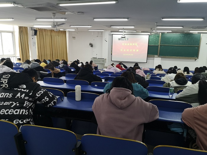 为扎实开展安全卫生文明月活动,普及安全常识,增强安全意识。3月19日中午,财会金融学院在6101、6102、6103阶梯教室举办第八届安全知识竞赛活动,参赛人数共计236人。