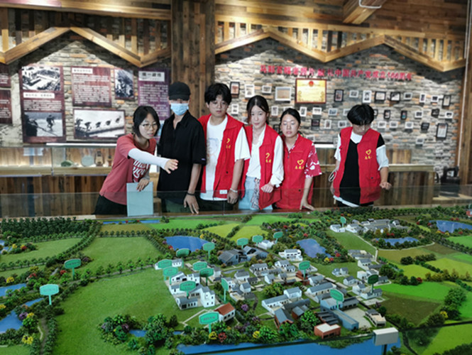 18日上午,由农场导师孙阳阳带领团队成员前往杨庙镇刘云峰烈士馆进行学习,据了解,刘玉峰烈士纪念馆于2010年建成,汇集了以刘云峰为首的杨庙镇仁人志士的主要事迹,以“永恒的怀念”、“辉煌的丰碑”、“烽火的回忆”、“血染的风采”为四大展陈版块,同学们在学习过程中了解建党以来杨庙地区的仁人志士为新中国的成立敢于抛头颅洒热血、不畏牺牲、奉献自我的英雄事迹,是他们用生命和鲜血谱写了一曲曲辉煌壮丽的战歌。同时,每天傍晚,团队成员分工与农场导师何业宁一起前往马郢周边的各村镇放映建党100周年红色主题电影,影片再现了一段段风雨飘摇的历史,重温了老一辈革命先烈为救人民于水火之中的英勇事迹,展现了中国共产党成立100周年来的辉煌历程。
