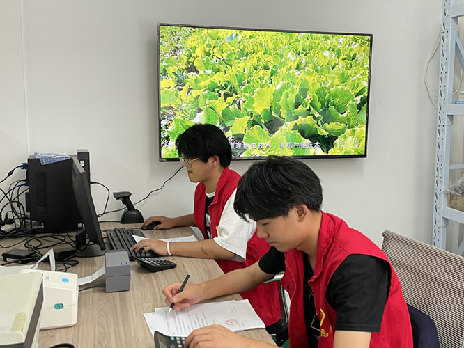 团队成员跟随农场导师了解马郢农场的种植现状,农场拥有大棚和露天两种种植模式,农场导师介绍了马郢智慧农场操作系统,主要针对大棚种植采取了半自动化的水肥系统,深入了解传统农业和现代智慧农业的区别,以及农场未来的发展方向。农场导师孙阳阳表示,马郢村当下的智慧农场系统是长丰县最为先进的系统,其运营流程主要是在追溯平台上进行登录,对农场一些相关的产品投送上线,最终会形成从产品的选择到打包发货一条完整的作业流水线,但还有很多地方趋待完善,希望青年志愿者能够助力智慧农场的建设和发展,使智慧农场系统更加完善。