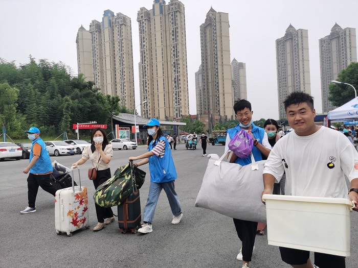 为做好疫情防控常态化形势下的迎新工作,在学校统一安排下,财会金融学院提前对“家长不进校、新生自报到”进行了全面部署,精心组织,周密安排。4日清晨,工作人员和志愿者们早早就来到了现场,各岗位准备就位,随后,一张张崭新的面庞欣喜的进入校园,接待点的志愿者们立刻热情相迎,撸起袖子毫不犹豫的做起了搬运工,一件件包裹一箱箱行李扛在身上、拉在身后。报到现场外志愿者为新生看管行李,新生简装上阵进入报到现场,PC端报到与手机扫码报到进行了有效的分流,提高了报到效率,从分流引导到报到接待,再到防诈骗教育,悉心、耐心、暖心,报到现场秩序井然。迎新工作人员现场及时解决新生遇到的各种问题和困难,确保疫情防控常态化迎新工作有序开展。