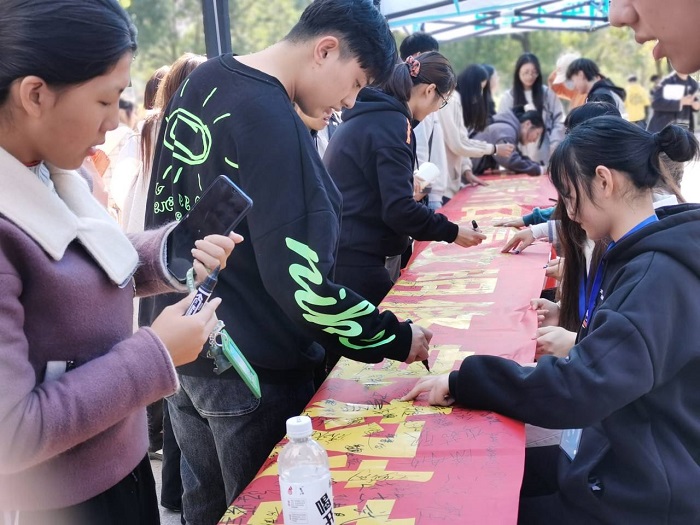11月12日中午,我院开展了 “厚德端行知荣辱,文明修身树新风” 横幅签名活动,同时展出文明规范展板,引导广大同学践行文明行为规范。活动结束后,我院将校园文明规范篇、教室文明规范篇、宿舍文明规范篇等有关的主题展板分别放置在3#教学楼、1#宿舍等公共场合,在不同的区域时时刻刻提醒着学生的行为,营造浓郁的文明风气。