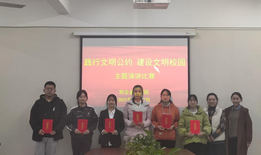 为教育引导鼓励学生积极投身文明校园创建活动,加强学生品德行为养成教育,营造文明、健康、和谐的良好氛围,财会金融学院于11月17日至11月29日举行“践行文明公约,建设文明校园”主题演讲比赛。