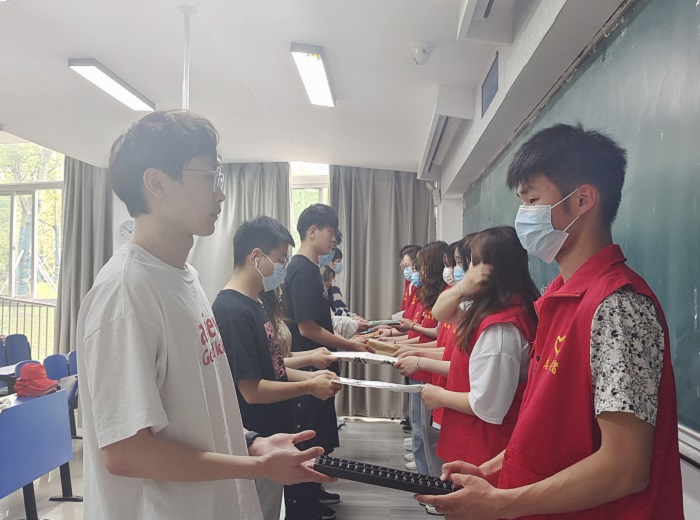 本次活动以搭建校园“云端”捐赠市场的形式,为同学们提供传递爱心的捐赠平台。活动中,同学们主动响应、积极参加,学生会组织志愿者线上对捐赠品供给与需求进行匹配,共收到专业考证书籍50余册,其他生活物品40余件,下学期即将离校实习的同学们更是将自己宝贵的学习资料捐赠给了一年级的学弟学妹,让爱心永不毕业。物品收集完成后,志愿者们将装满沉甸甸爱心的收纳袋搬到6106教室,进行线下捐赠仪式。会计2116班陈婷婷同学通过此次活动获得了来自18会计01班臧子晨同学捐赠的初级会计实务考证教材,她深表感谢,表示学习资料中满满的读书笔记有利于提升她的学习效率和备考动力。