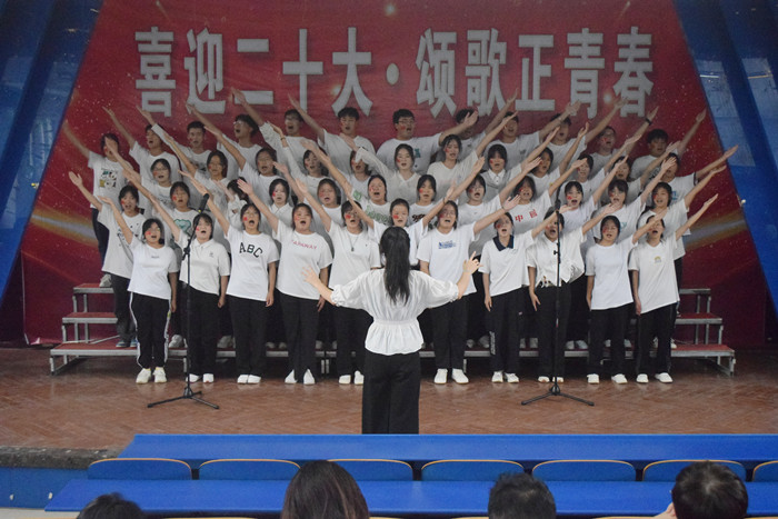 财会金融学院翡翠校区2022级39个新生班级服装整齐、姿态挺拔、精神昂扬。一路风雨一路高歌,一路坎坷一路凯旋,各班级用歌声缅怀历史、用青春展望未来,展示出新时代青年的蓬勃朝气。《强军战歌》《团结就是力量》《打靶归来》《当那一天来临》《闪闪红星》等激昂旋律激励着青年学子们奋发向上;《国家》《歌唱祖国》《奉献》等曲目让现场的同学们为新时代伟大成就感到骄傲与自豪,同学们以最真挚的情感、最嘹亮的歌声喜迎党的二十大。