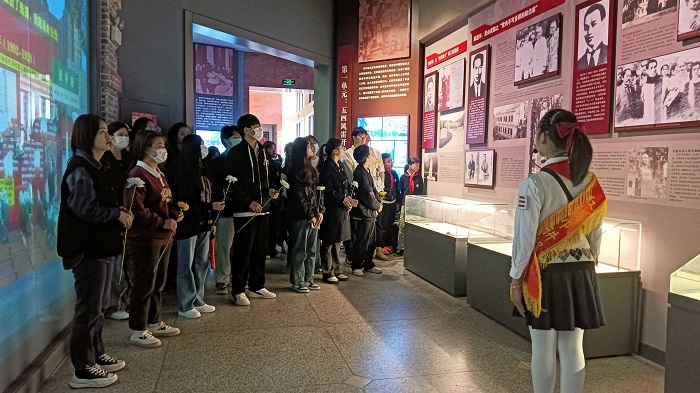 英烈事迹,百世流芳;英烈精神,激励后人,在清明节到来之际,财会金融学院团总支书记沈丽萍带领26名入党积极分子和团学干部走进大蜀山烈士陵园。在讲解员的引导下,同学们参观了安徽革命烈士陈列馆,瞻仰全省有代表性的367位烈士的英烈事迹,追忆革命先烈浴血奋战的光辉历史。参观学习后,同学们手持鲜花、怀着无比崇敬的心情肃立在悼念广场的中央,面向烈士纪念碑奏唱国歌,在嘹亮的歌声中感受革命先辈的力量。默哀、鞠躬、献花、寄语,同学们对革命先辈的崇敬之情溢于言表,此时纪念碑里一个个鲜活的人物、一桩桩英雄的事迹浮现在同学们的面前,先烈们视死如归、坚贞不屈的精神令同学们深受震撼,纷纷表示,作为新时代青年要不忘历史,传承先烈们的红色革命精神,铭记历史教训,为实现新时代的中国梦而努力奋斗。(供稿:沈丽萍 审稿:李健)