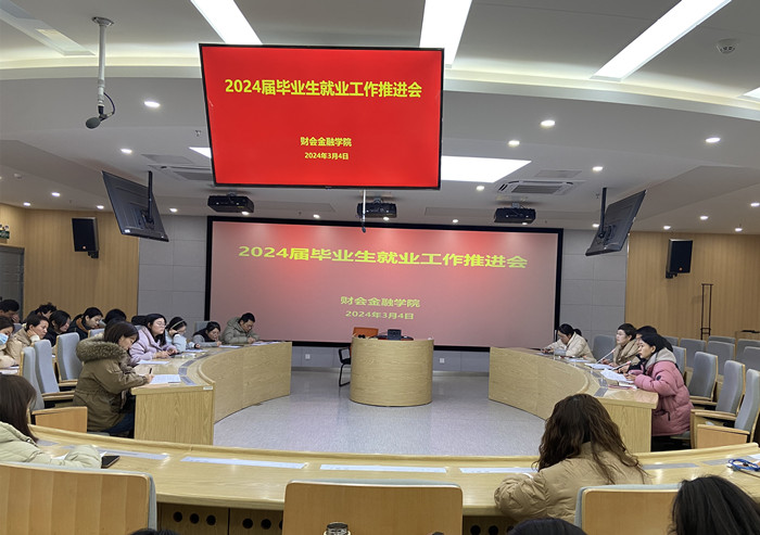 3月4日下午,财会金融学院召开2024届毕业生就业工作推进会。党总支书记胡宏萱、副书记李健及全体2024届毕业班辅导员参加会议。