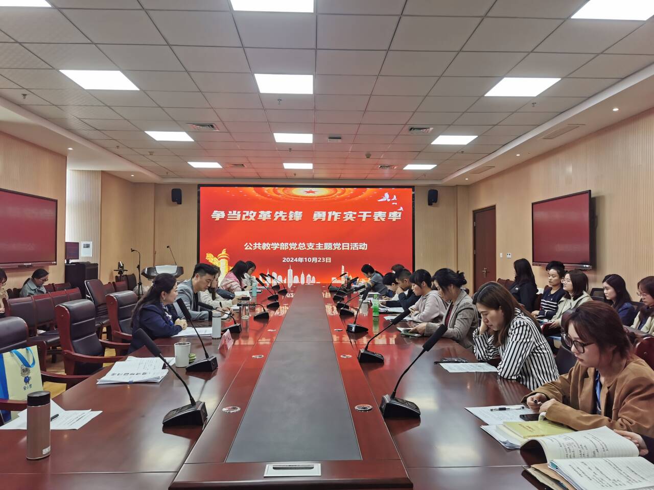 10月23日,为深入学习贯彻党的二十届三中全会精神,引导广大党员教师深刻领会全会精神,明确教育改革方向,以实际行动推动学校高质量发展,公共教学部党总支开展了“争当改革先锋 勇作实干表率”的主题党日活动。全体党员参加了活动。
