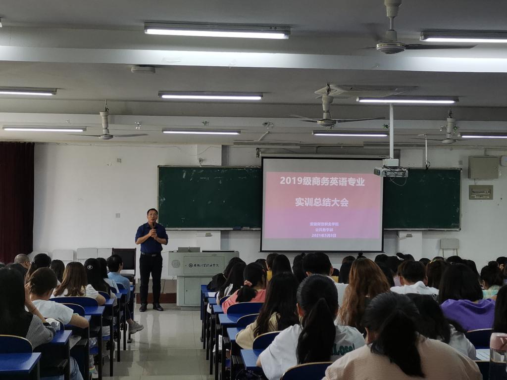 5月8日下午,公共教学部商务英语专业在6102教室召开实训总结大会,合肥燕归来铝制品进出口有限公司总经理凌勇,安徽轩昂教育科技有限公司美工总监沈虹、行政总监陈蕾,公共教学部党总支副书记何步新,公共教学部副主任陈伟及外语教研室商务英语专业全体教师出席了会议。