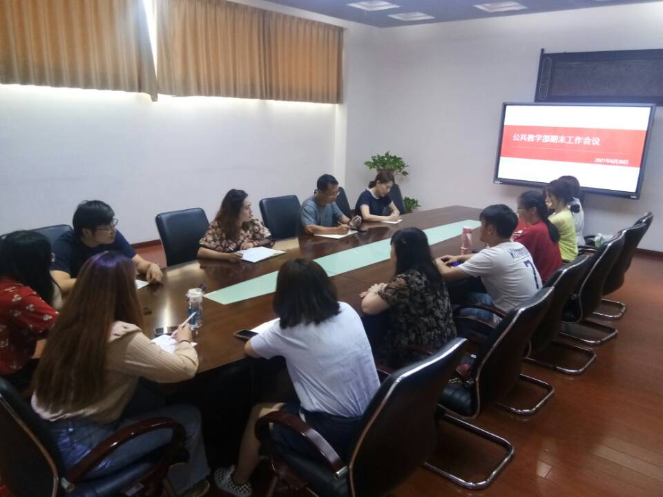 6月30日,公共教学部2020-2021学年第二学期期末工作总结会议在行政楼第三会议室召开。党总支副书记何步新、副主任陈伟及各教研室主任、副主任出席了会议,新进教师列席会议,会议由陈伟主持。