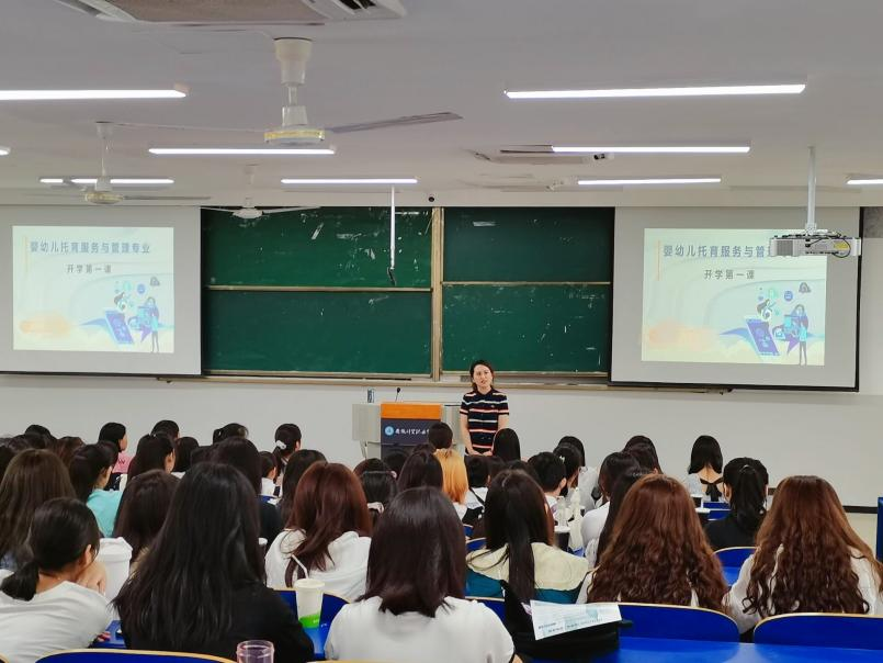 9月8日上午,公共教学部婴幼儿托育服务与管理专业新生入学教育在6103教室举行。公共教学部副主任陈伟、专业负责人王潇、安徽中科众硕教育科技公司执行董事胡彩红、韩国东明大学安徽区域负责人张垚及2021级全体婴幼儿托育服务管理专业学生参加了此次活动。