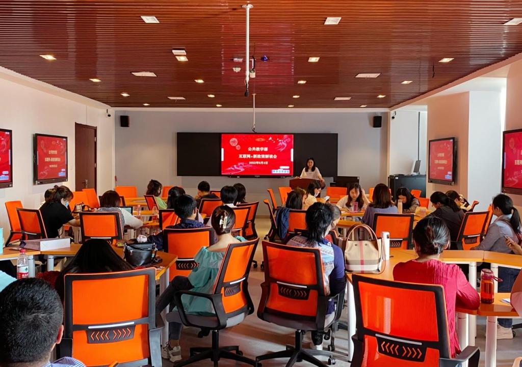 为了更好地保障第八届“互联网+”大学生创新创业大赛备赛工作的有效实施和有序推进,5月4日下午,公共教学部在行政楼三楼智慧教室召开第八届“互联网+”大学生创新创业大赛新政策解读会。会议邀请了教务处赛事与双创办公室主任陈曦为组队参赛的老师们作辅导报告。公共教学部全体行政人员及专兼职教师参加了会议,公共教学部副主任陈伟主持会议。