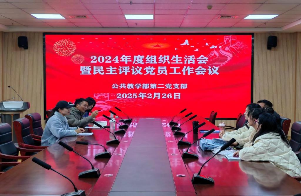 2月26日,公共教学部教师第二党支部在行政楼308会议室召开2024年度组织生活会和民主评议党员会议,全体党员参会,党支部书记桑磊主持会议。