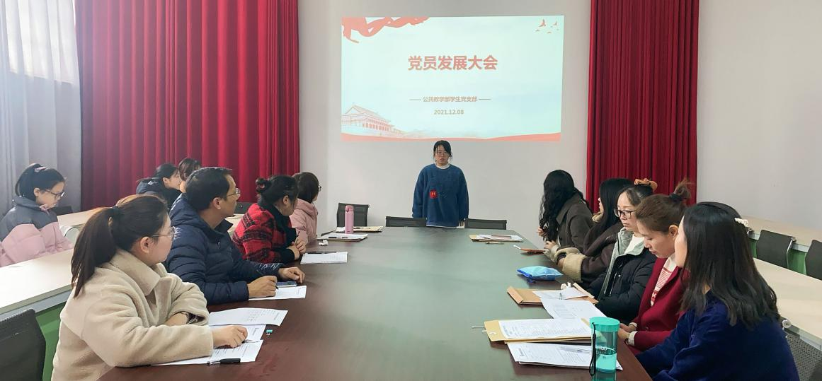 12月08日,公共教学部学生党支部在行政楼208召开了2021年下半年预备党员发展大会,党总支副书记何步新、党总支委员及学生党支部全体党员教师参加了此次会议。