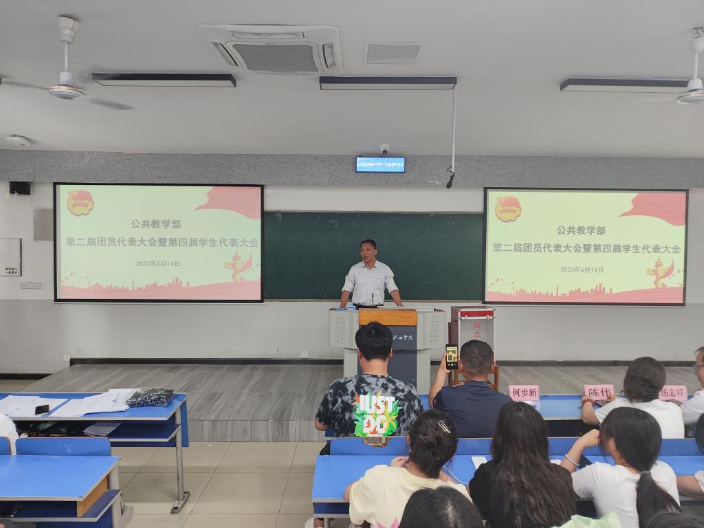 6月14日下午,公共教学部第二次团员代表大会暨第四次学生代表大会在5102教室成功召开。公共教学部党总支副书记何步新,副主任陈伟,办公室主任杨志祥,党总支宣传委员朱亚伟,团总支干事徐志强及各位专职辅导员出席会议。