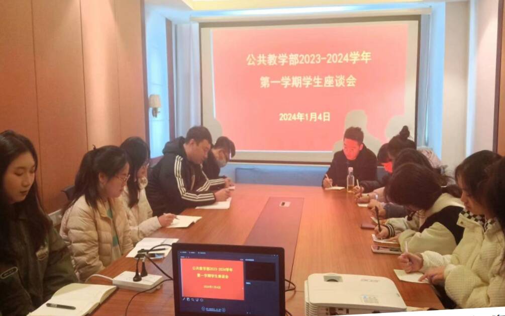 1月4日,在2023-2024第一学期即将结束之际,公共教学部召开期末学生座谈会,会议由负责公共教学部团总支工作的王燕娇老师主持。公共教学部学生主席团和各班学生寝室长代表参加会议,公共教学部各专职辅导员出席会议。