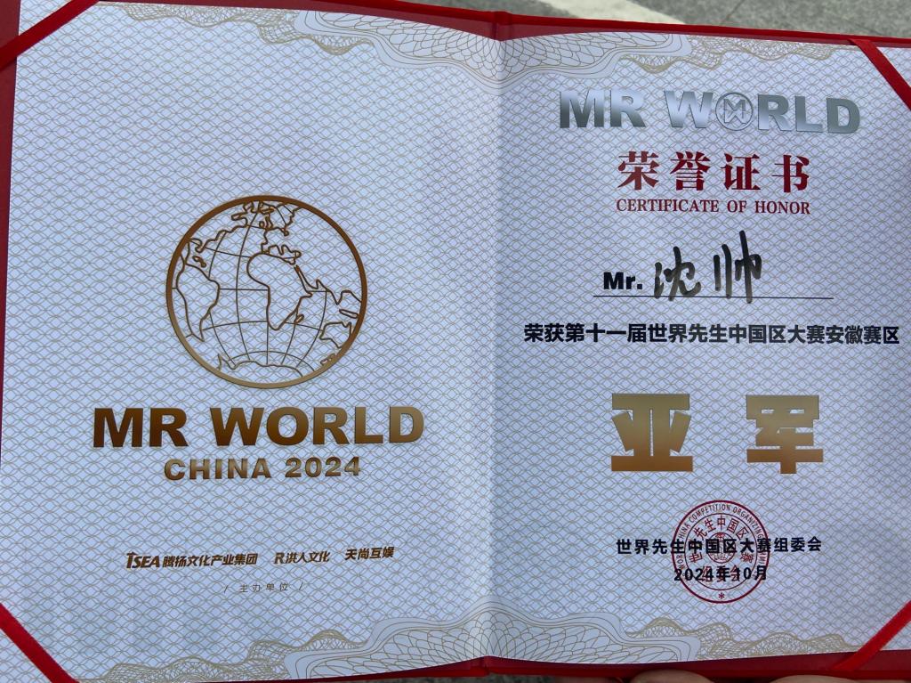 10月19日,我校健身队数媒2302班沈帅同学获得第11届世界先生安徽赛区总决赛亚军。即将代表安徽参加10月27日在雷山举办的中国区总决赛。