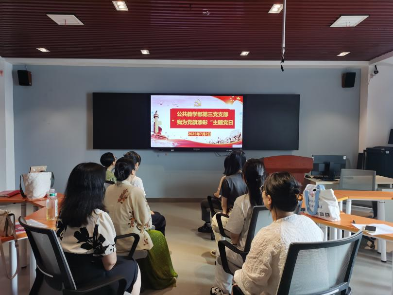 2025年7月2日,公共教学部第三党支部开展“我为党旗添彩”主题党日活动,通过学党史,将党的教育历史与教师职业素养提升深度融合,为立德树人工作注入红色动能。