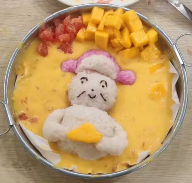 24级、25级食品专业学生围绕“食品创新设计”主题参赛,将食品工艺与创意结合,涌现出多款优秀作品:“温室效应冰川融化观景甜品”借食材设计呼应环保;“圣诞树造型蔬菜蛋糕”以蔬果搭配传递健康理念;“财神杨枝甘露糯米饭”融入节庆元素;“双口味油炸金针菇”“双色水果海绵蛋糕”也因特色口感受关注。