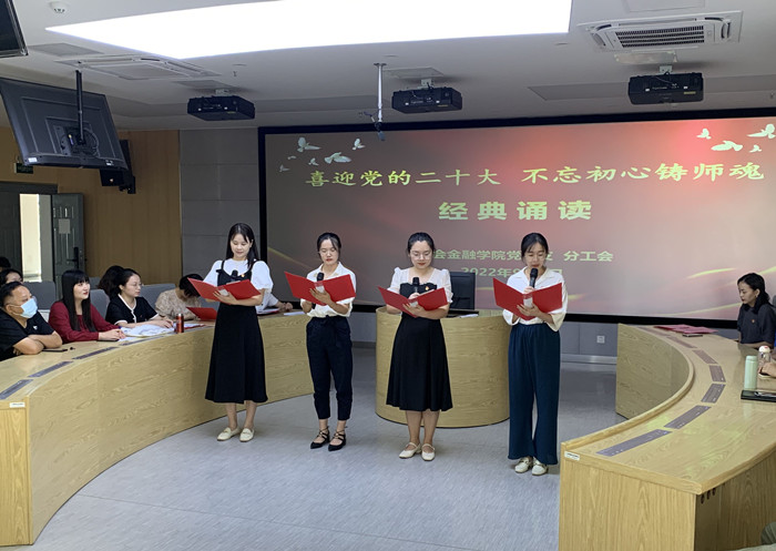 9月7日下午,财会金融学院分工会在A502实训室开展“喜迎党的二十大 不忘初心铸师魂”经典诵读活动,抒发爱党爱国情怀和对教育事业的无限热爱。
