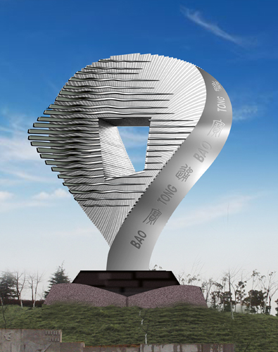 学院拟在文化广场山顶修铸雕塑一座,暂定名为“源脉”。作品以具有悠久历史的中国古钱币为造型主体,中间用横向流动的曲线贯穿,象征着中国财贸的发展进程与速度。基础设计为书的造型,寓意学院发展教育是基础,知识是根本、是源脉。侧面用篆字“通宝”和拼音字母镶嵌其中,意为远古与当代。作品艺术语言简洁,具有强烈的生命动感和时代感。作品高12—15米,材质为不锈钢。