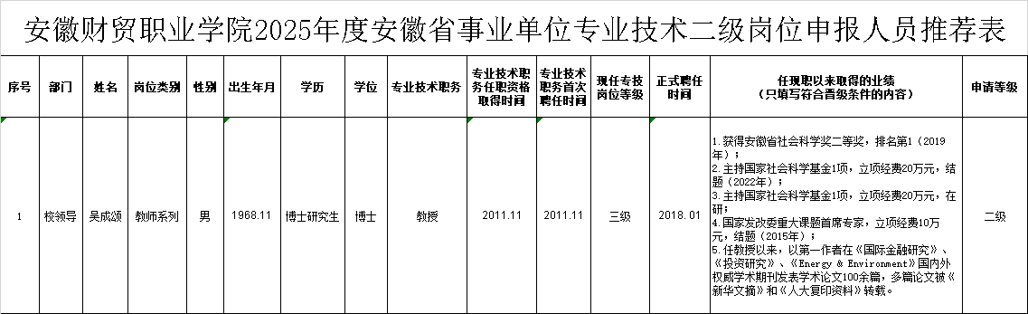 根据《关于转发<关于开展2025年度事业单位专业技术人员申报二级岗位工作的通知>的通知》有关规定,经学术委员会审议现将beat365在线唯一官网2025年度二级岗位推荐申报公示如下。