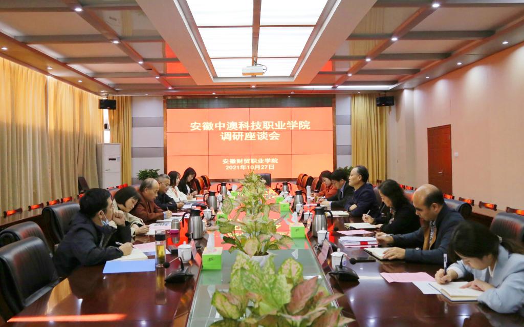 10月27日上午,安徽中澳科技职业学院党委书记汪源浩、纪委书记陈泰一行到我校调研纪检监察工作。学校党委书记张志祥,党委委员、纪委书记罗虹陪同调研,学校纪委委员和监察审计处、办公室的相关人员参加座谈。