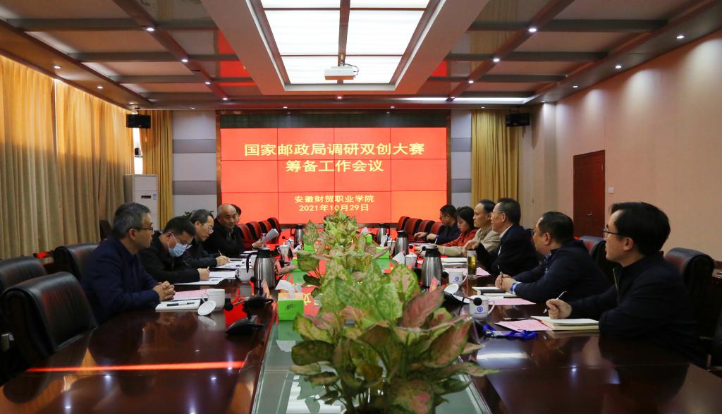 刘银国对国家邮政总局的到访表示热烈欢迎,介绍了学校近年来在教育教学、人才培养、社会服务、创新创业等方面取得的进步。学校将积极发挥资源优势,加强与各行业协会交流合作,不断完善软硬件设施,提升服务品质。教务处相关负责人从评审安排、赛程安排、疫情防控等方面详细汇报了大赛筹备工作情况。