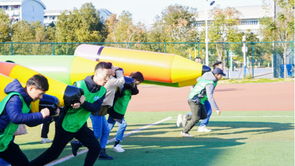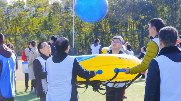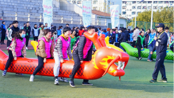 本次运动会共设同舟共济、奋笔疾书、旱地龙舟、众心捧月等四个趣味性项目,每个项目由同一分工会的4名参赛选手组成一个小组出场竞技。随着主教练宣布比赛项目、规则和流程,9支队伍分成四个大组,对应到相应的四个项目区同场竞技。本着发扬“相互学习、加强团结、增进友谊”的比赛精神,各代表队都精神饱满、斗志昂扬,在历时二个小时的比赛过程中,所有参赛队员都保持着活跃、快乐的心情积极参加小组竞技,整个体育场上祥和有序、充满着欢声笑语,充分展示了安财院人在校党委的带领下,乘“十四五”东风,以团结友爱、和谐向上、不畏艰难的精神风貌,再踏新征程,再迈新步伐,再聚新力量。