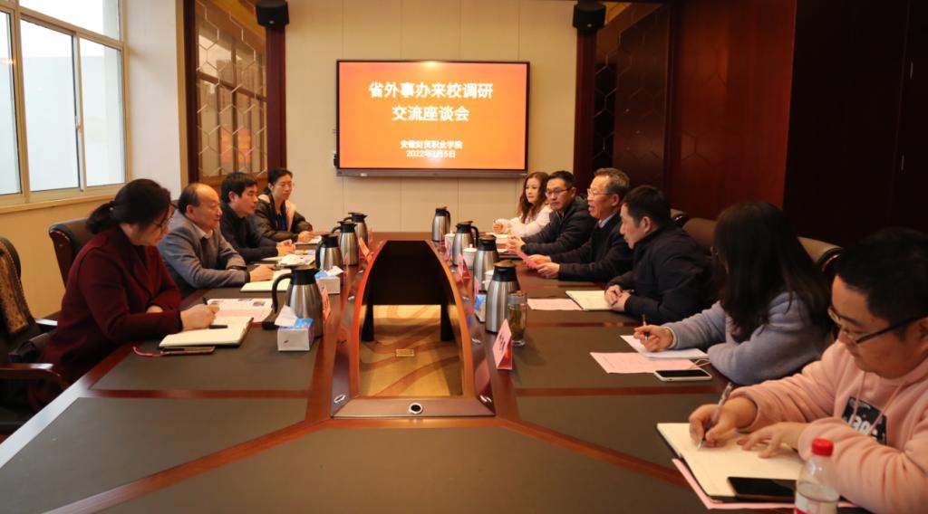 刘银国向省外办长期以来给予我校的支持与指导表示感谢。他介绍了学校近年来在国际交流合作中承担的主要工作和成果,以及近期开展“一带一路”沿线国家“中文+职业技能”系列培训交流活动情况。他表示,希望能与省外办加强合作,拓宽学校办学国际视野,积极弘扬中国精神、传递徽风皖韵。